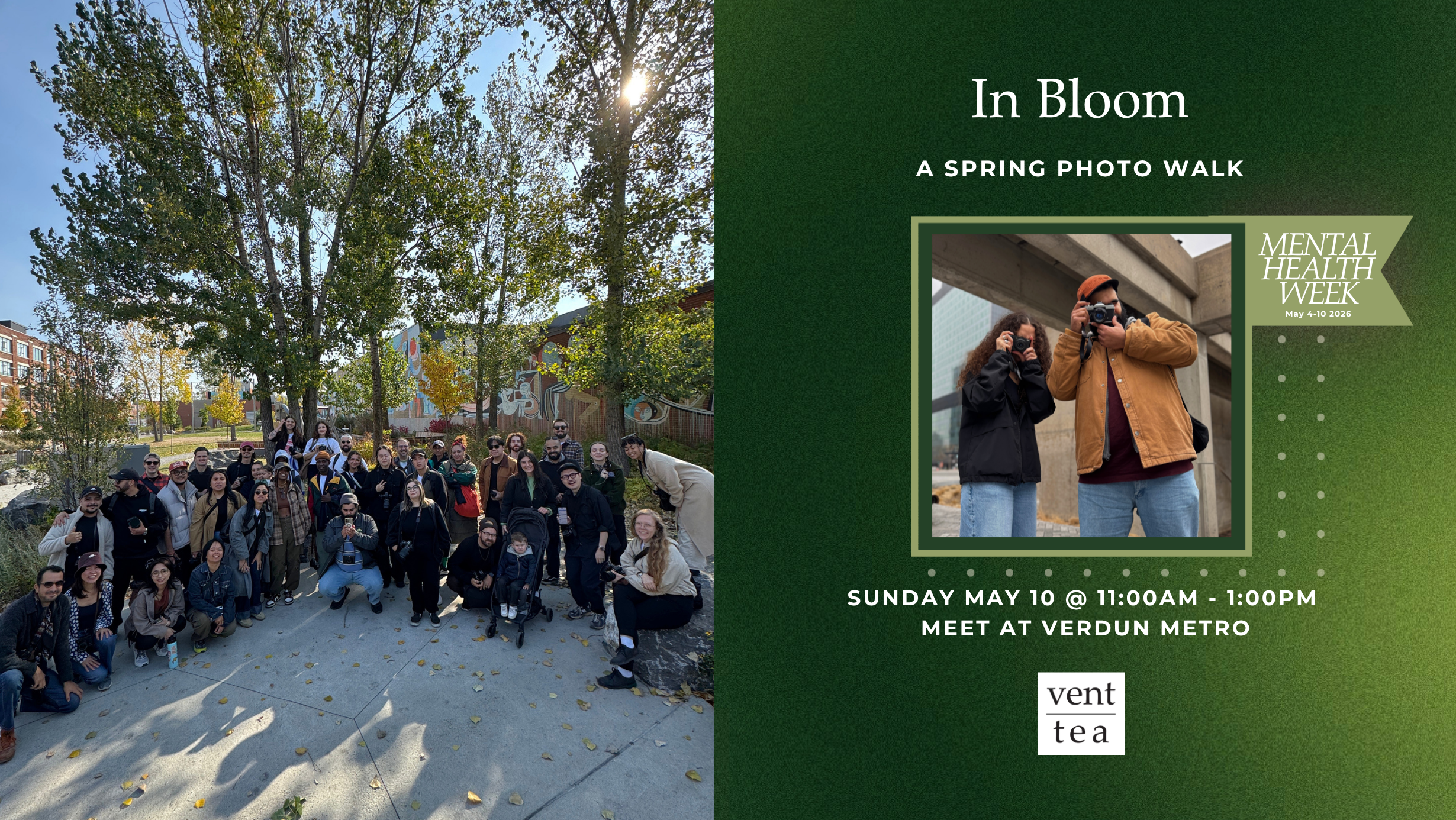In the spirit of Mental Health Week’s “Come Together” theme, Vent Over Tea is hosting three gatherings, a morning café centering those doing care-centered and community-rooted work, a meditative journaling workshop, and a spring photo walk, each nurturing connection, reflection, and shared care. Through these offerings, we’re creating space to slow down, be in community, and strengthen the relationships that support our mental wellbeing. We’d love to see you throughout the week:
